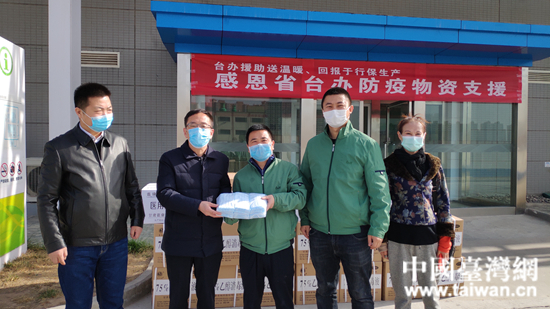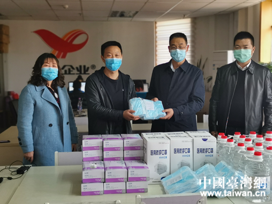 崔鵬沖代表省臺(tái)辦向蘭州統(tǒng)一食品有限公司贈(zèng)送防疫物資。 (中國臺(tái)灣網(wǎng) 發(fā))