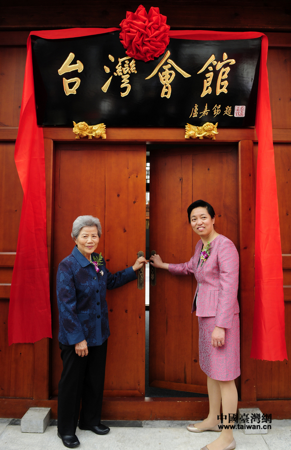 資料圖:全國臺聯(lián)創(chuàng)會會長林麗韞和時任北京市臺聯(lián)會長蘇輝共同推開重張后的臺灣會館大門(中國臺灣網(wǎng)發(fā))