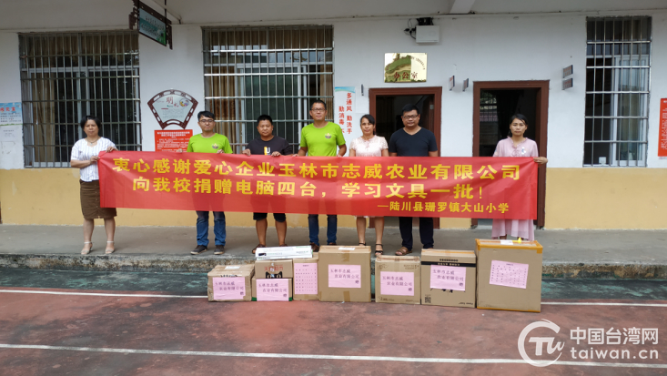 中國(guó)臺(tái)灣網(wǎng)5月21日訊 日前,臺(tái)資企業(yè)玉林市志威農(nóng)業(yè)有限公司負(fù)責(zé)人鄭志威、鄭志文兄弟倆走進(jìn)企業(yè)所在地陸川縣珊羅鎮(zhèn)大山小學(xué),給學(xué)校捐贈(zèng)了4臺(tái)電腦和一批學(xué)習(xí)文具,為該校師生送去了社會(huì)的關(guān)心和溫暖。