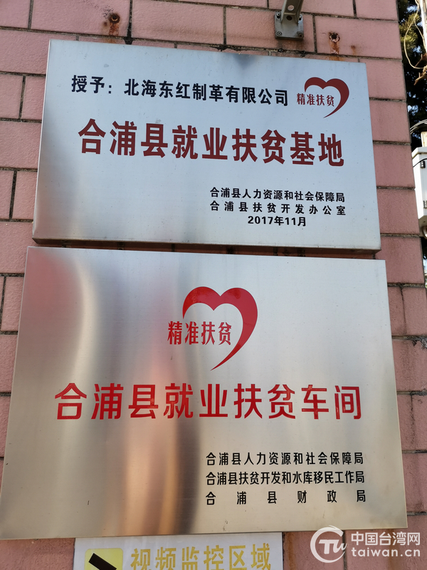 北海東紅制革有限公司與合浦縣廉州鎮(zhèn)合作開辦就業(yè)扶貧車間(圖片來源:廣西北海市臺辦)