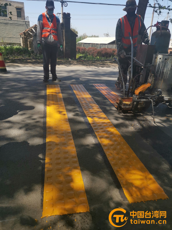 鋪設(shè)道路減速帶(圖片來源:遼陽市臺辦)