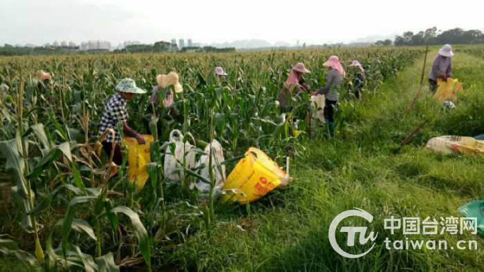 農(nóng)戶正在玉米地里忙碌(圖片來源:廣西來賓市臺辦)