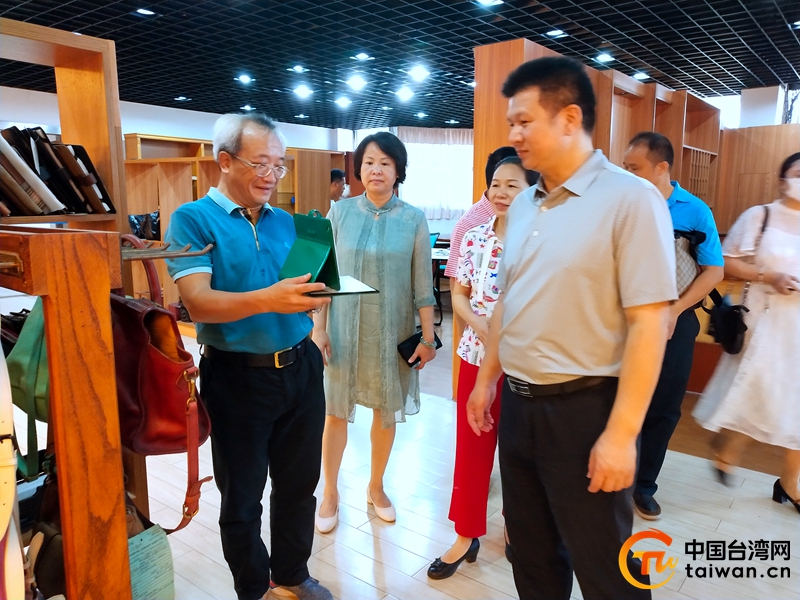 廣西臺辦副主任丘德彬一行考察東莞寶悅皮具有限公司(圖片來源:廣西玉林市臺辦)