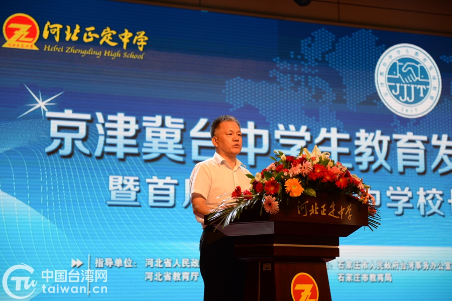 河北省委臺(tái)辦主任王立杰主持第一屆津冀臺(tái)中學(xué)生教育發(fā)展論壇(圖片來源:河北省委臺(tái)辦提供)