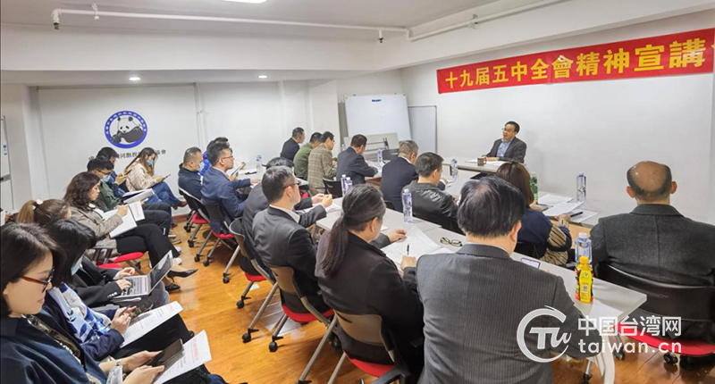 中國(guó)臺(tái)灣網(wǎng)11月19日成都訊 11月16日,成都臺(tái)協(xié)會(huì)會(huì)議室,30多位在川臺(tái)商圍坐一堂,認(rèn)真聆聽(tīng)四川省臺(tái)辦副主任張軍對(duì)十九屆五中全會(huì)精神的宣講,一邊用筆勾畫(huà)著自己關(guān)心的重點(diǎn)。通過(guò)宣講會(huì),大家進(jìn)一步了解了“十四五規(guī)劃”和2035年遠(yuǎn)景目標(biāo),紛紛表示,感覺(jué)大陸發(fā)展又迎來(lái)了新機(jī)遇,要抓住新機(jī)遇和已經(jīng)出臺(tái)的利好政策,實(shí)現(xiàn)更大更好的發(fā)展。