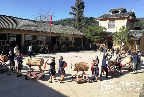 拍攝墨江哈尼族牛皮大鼓舞。(普洱市委臺(tái)辦供圖)