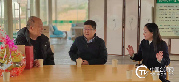 崇左市委常委、副市長(zhǎng)蘇林(中)、崇左市臺(tái)辦主任胡小麗(右)與臺(tái)商王九齡(左)交流暢談(圖片來(lái)源:廣西崇左市臺(tái)辦供圖)