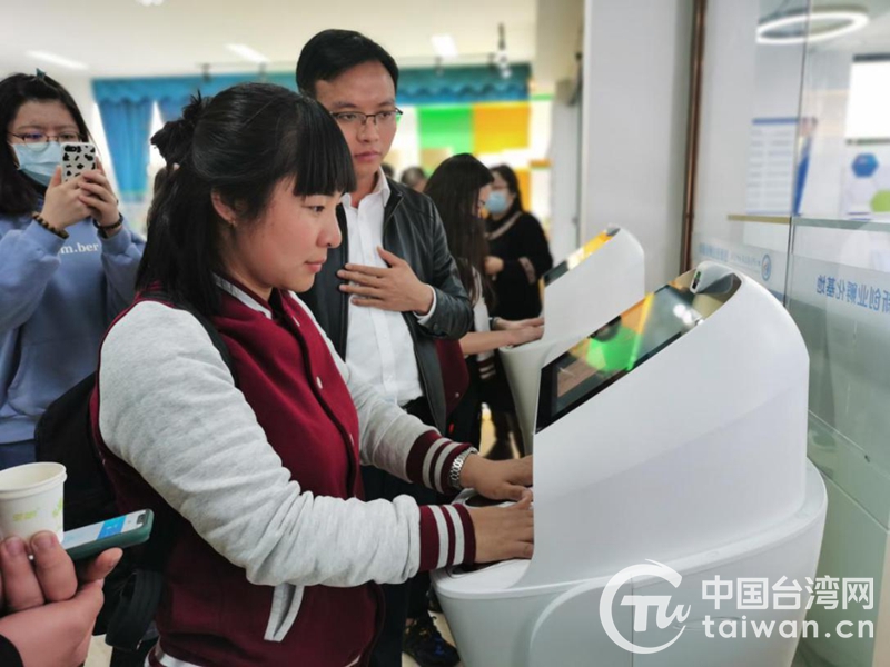 同學(xué)們首站來到四川中醫(yī)藥高等?茖W(xué)校,參訪創(chuàng)新創(chuàng)業(yè)服務(wù)中心,品嘗該校研制的抗疫茶,體驗(yàn)中藥做成的藥包、浴包、牙膏等產(chǎn)品,觀看該校學(xué)生文創(chuàng)作品,詳細(xì)了解該!皠(chuàng)意激發(fā)、創(chuàng)新創(chuàng)業(yè)訓(xùn)練、創(chuàng)新創(chuàng)業(yè)實(shí)踐、創(chuàng)業(yè)孵化”全鏈條創(chuàng)新創(chuàng)業(yè)孵化新模式。在服務(wù)中心的大廳內(nèi),四川中醫(yī)藥高等?茖W(xué)校與京東聯(lián)合研發(fā)的兩臺(tái)中醫(yī)體質(zhì)監(jiān)測(cè)儀吸引了同學(xué)們的注意,檢測(cè)儀采用中醫(yī)與現(xiàn)代技術(shù)相結(jié)合,通過高清攝像頭掃描面部、舌部等方式,進(jìn)行體質(zhì)辨識(shí)!爸恍鑼⑹址旁趦x器上,兩分鐘就能收到身體報(bào)告,真的太神奇了。”臺(tái)灣學(xué)子張金梅一邊在手機(jī)上查看檢測(cè)報(bào)告,一邊發(fā)出驚嘆。