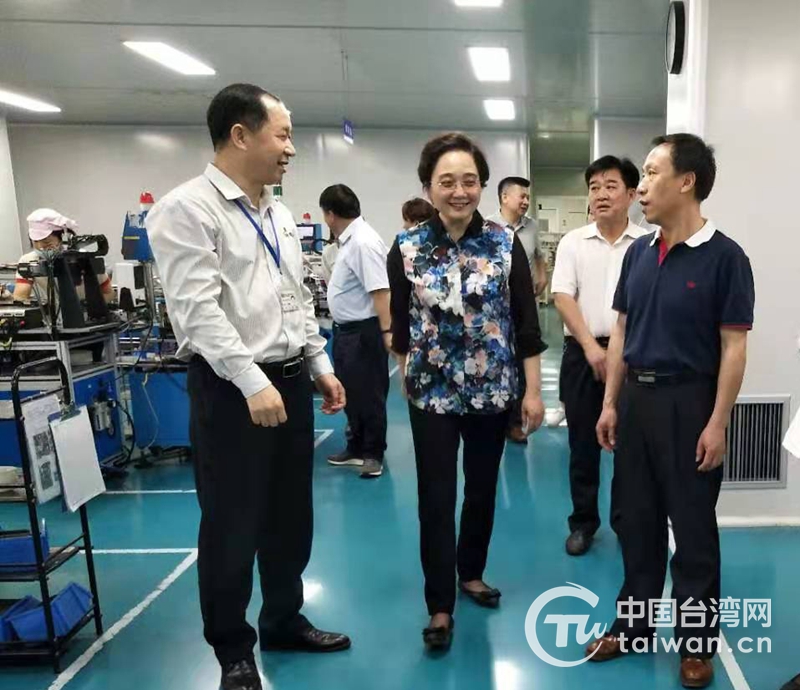 廣西臺辦主任李莉(前排中)在臺企優(yōu)耐電子(岑溪)有限公司調(diào)研。(圖片來源:廣西臺辦)