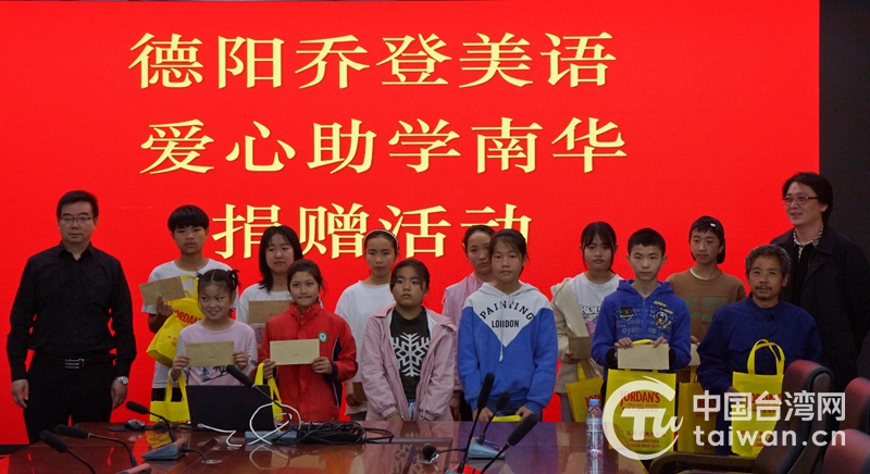 中國(guó)臺(tái)灣網(wǎng)4月27日訊 4月24日,四川德陽(yáng)市臺(tái)資企業(yè)協(xié)會(huì)副會(huì)長(zhǎng)、喬登美語(yǔ)事業(yè)機(jī)構(gòu)張嚴(yán)文先生前往德陽(yáng)市旌陽(yáng)區(qū)和新鎮(zhèn)長(zhǎng)壽村、中江縣南華鎮(zhèn)和永太鎮(zhèn),向結(jié)對(duì)的43名中小學(xué)生捐贈(zèng)助學(xué)金、文具用品共計(jì)2萬余元。張嚴(yán)文勉勵(lì)孩子們,“要記住去年疫情對(duì)國(guó)家和人民帶來的磨難,將其轉(zhuǎn)化為更加刻苦學(xué)習(xí)的動(dòng)力,用知識(shí)的力量走出困境、感恩家庭、回饋社會(huì)、報(bào)效國(guó)家!