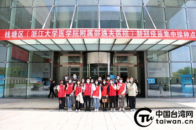 臺灣大學(xué)生青年健康護(hù)衛(wèi)隊(duì)在疫苗接種點(diǎn)(圖片來源:浙江省臺辦)