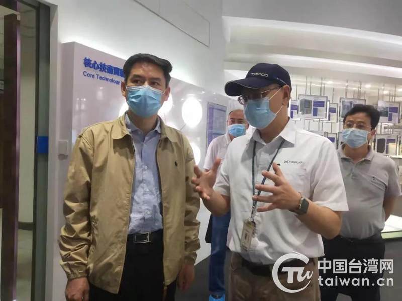 湖北省臺辦副主任嚴榮利深入健鼎(湖北)電子有限公司(圖片來源:湖北省臺辦)