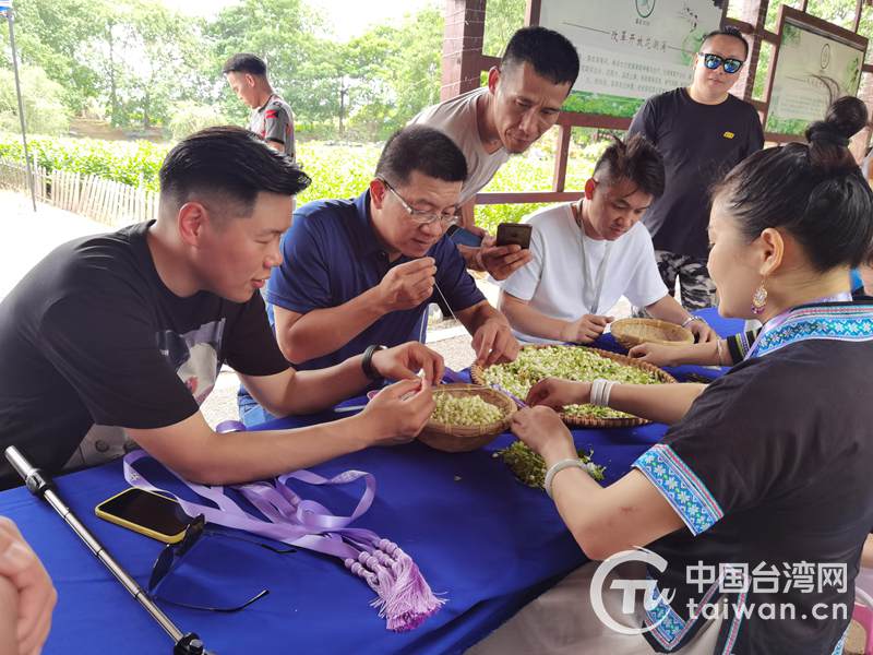 臺(tái)青體驗(yàn)茉莉花文創(chuàng)產(chǎn)品制作(圖片來(lái)源:廣西臺(tái)辦)