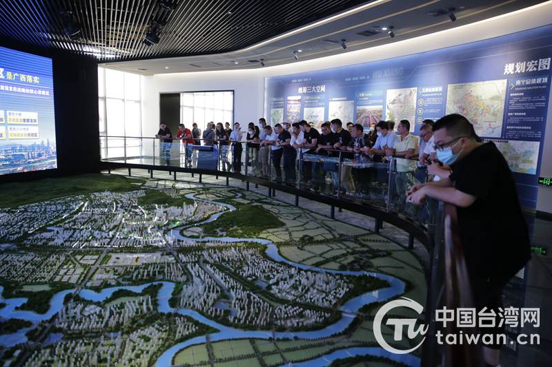 觀看五象新區(qū)發(fā)展沙盤(pán)。(圖片來(lái)源:廣西臺(tái)辦)