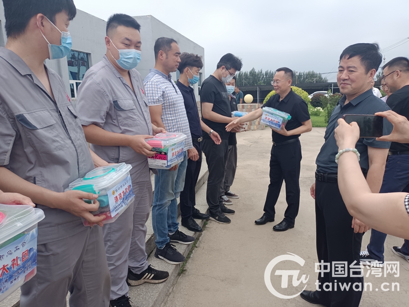 中國(guó)臺(tái)灣網(wǎng)8月9日訊 為扎實(shí)開(kāi)展“我為群眾辦實(shí)事”實(shí)踐活動(dòng),8月5日,鐵嶺市臺(tái)辦聯(lián)合市總工會(huì)深入大成農(nóng)牧(鐵嶺)有限公司、遼寧和泰汽車(chē)零部件有限公司、遼寧有巢氏置業(yè)有限公司等臺(tái)企,向從事高溫作業(yè)的職工送去防暑降溫禮包。鐵嶺市臺(tái)辦主任韓相東參加活動(dòng)。