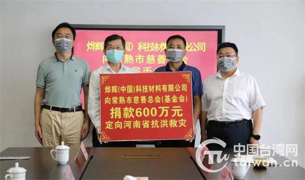 中國臺灣網(wǎng)8月12日訊 日前,江蘇省常熟市臺資企業(yè)燁輝科技向常熟市慈善總會捐款600萬元,定向河南省抗洪救災(zāi)。