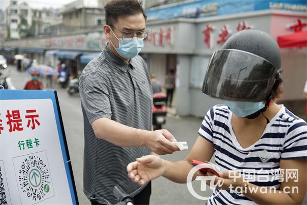 中國臺(tái)灣網(wǎng)8月13日訊 “請(qǐng)您戴好口罩、出示健康碼和行程碼,謝謝!”“請(qǐng)不要擁擠,有序排隊(duì),保持一米距離”……近日,一口溫軟的臺(tái)灣腔普通話回響在江蘇無錫榮巷市場(chǎng)和龍山路幾個(gè)重要卡口,這是潘柏銓、楊貞威等臺(tái)青以志愿者的身份投身基層社區(qū)疫情防控工作。