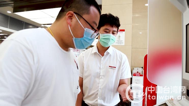 廈門(mén)大學(xué)生吳政賢在中信銀行鎮(zhèn)江分行接待客戶(hù)(圖片來(lái)源:鎮(zhèn)江臺(tái)辦)