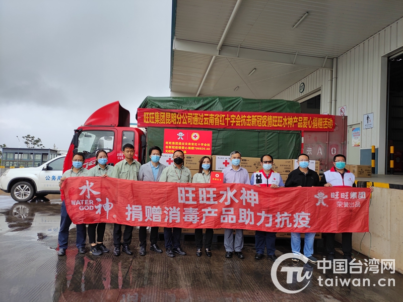 旺旺集團(tuán)昆明分公司捐贈(zèng)消毒產(chǎn)品儀式(圖片來(lái)源: 云南省臺(tái)辦)