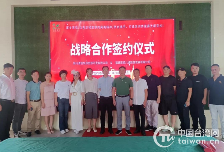 中國臺灣網8月27日訊 8月25日,泉州清境桃源旅游開發(fā)有限公司與福建宏碩八通旅游發(fā)展有限公司戰(zhàn)略合作簽約儀式在南安清境桃源景區(qū)舉行。