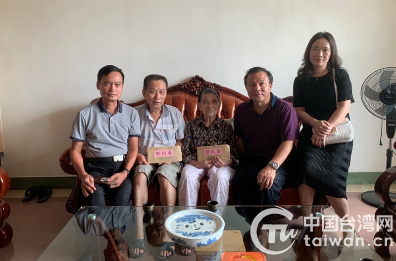 王忠豪(右二)率梅州市臺(tái)聯(lián)會(huì)秘書處相關(guān)負(fù)責(zé)同志到梅江區(qū)慰問(wèn)98歲定居老臺(tái)胞蔡明霞(右三)。(圖片來(lái)源:梅州市委臺(tái)港澳辦)