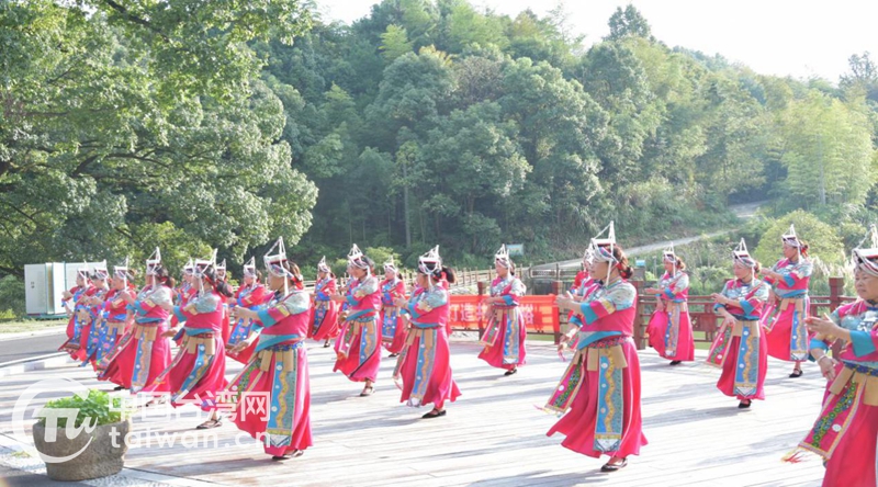 畬族鄉(xiāng)親載歌載舞歡迎杭州南投兩地青年朋友(圖片來源:杭州市臺(tái)辦)