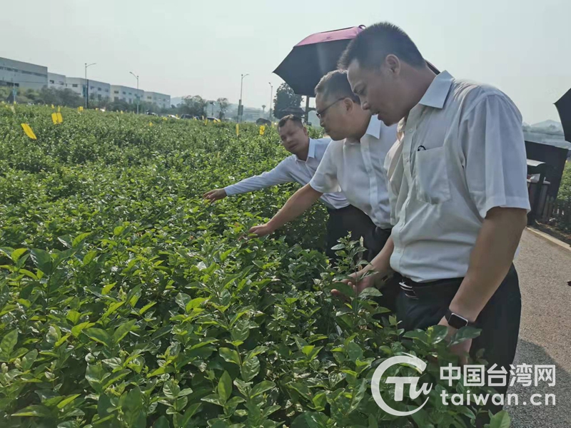 林承格(右二)調(diào)研中華茉莉園。(圖片來(lái)源:廣西臺(tái)辦)