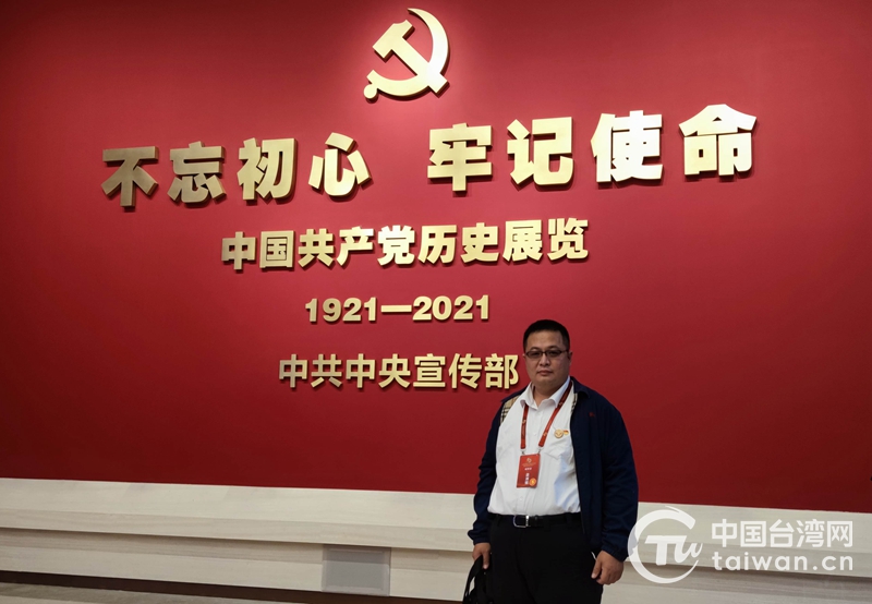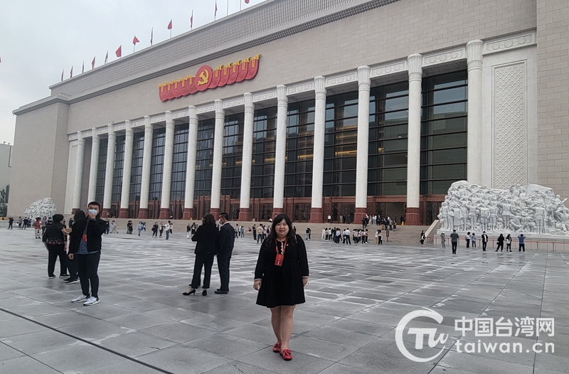 王孟筠在中國(guó)共產(chǎn)黨歷史展覽館前留影(圖片來(lái)源:廣西臺(tái)辦)