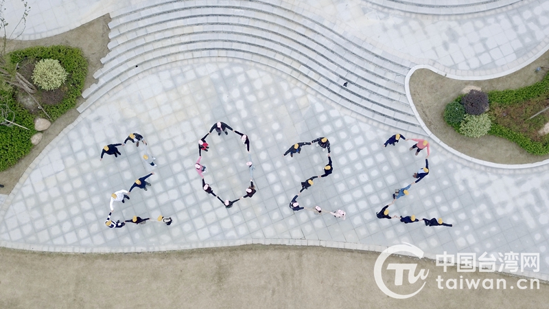臺(tái)青手牽手?jǐn)[出“2022”造型(圖片來(lái)源:杭州市臺(tái)辦)