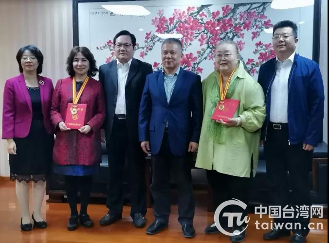 中國(guó)臺(tái)灣網(wǎng)11月11日訊 近日,廣東省委臺(tái)辦主任黃耿城在廣州為臺(tái)胞婦女游淑燕、陳瑞苓頒發(fā)“廣東省三八紅旗手”榮譽(yù)獎(jiǎng)?wù)潞妥C書。