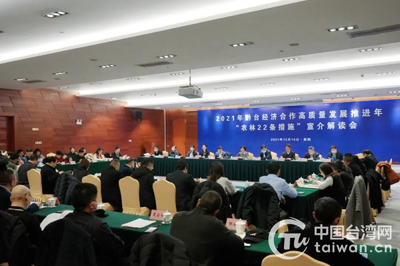 中國(guó)臺(tái)灣網(wǎng)12月13日訊 貴州省臺(tái)辦近日召開(kāi)2021年黔臺(tái)經(jīng)濟(jì)合作高質(zhì)量發(fā)展推進(jìn)年“農(nóng)林22條措施”宣介解讀會(huì),旨在搭建服務(wù)在黔臺(tái)資農(nóng)林企業(yè)的平臺(tái),進(jìn)一步分享貴州“十四五”發(fā)展新機(jī)遇,增進(jìn)在黔臺(tái)胞臺(tái)企投資貴州、扎根貴州的信心,助推黔臺(tái)農(nóng)林領(lǐng)域交流合作實(shí)現(xiàn)新突破。來(lái)自貴州省發(fā)展改革委、省農(nóng)業(yè)農(nóng)村廳等部門(mén)分管負(fù)責(zé)人,各市(州)臺(tái)辦負(fù)責(zé)人,及在黔農(nóng)林業(yè)臺(tái)商臺(tái)企代表等60余人參加會(huì)議。
