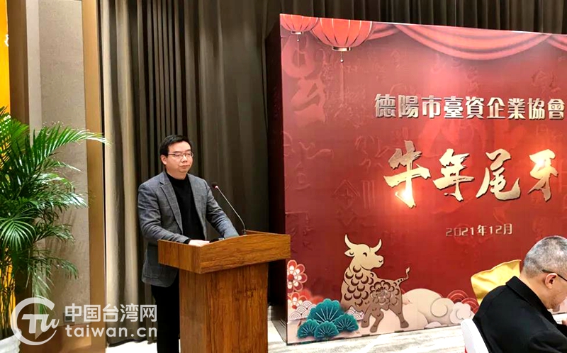 德陽市委統(tǒng)戰(zhàn)部副部長、市僑聯(lián)黨組書記謝錦輝代表德陽市臺(tái)辦向在德臺(tái)商及親人表達(dá)了新年問候,并向與會(huì)臺(tái)商臺(tái)青通報(bào)了2021年德陽市經(jīng)濟(jì)形勢和臺(tái)資企業(yè)發(fā)展情況,肯定了臺(tái)資企業(yè)對德陽經(jīng)濟(jì)社會(huì)發(fā)展作出的積極貢獻(xiàn)。希望德陽臺(tái)商協(xié)會(huì)和廣大臺(tái)商臺(tái)青堅(jiān)決反對“臺(tái)獨(dú)”,繼續(xù)推動(dòng)德陽與臺(tái)灣加強(qiáng)交流合作,介紹更多臺(tái)商朋友來德陽投資發(fā)展,為推進(jìn)兩岸關(guān)系和平發(fā)展、融合發(fā)展貢獻(xiàn)力量。