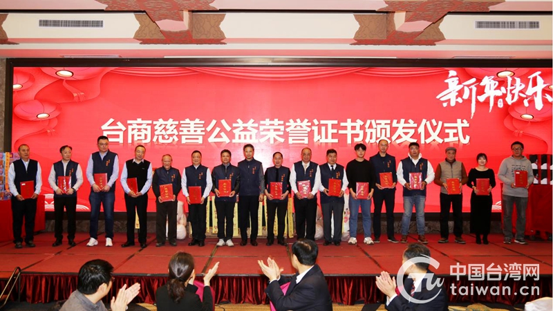聯(lián)誼會上還向來濟南創(chuàng)業(yè)滿20年的臺商代表頒發(fā)了“創(chuàng)業(yè)齊魯、樂在山東”紀念牌匾,向積極參與“暖心行動”公益活動的市臺協(xié)會會員頒發(fā)了“臺商慈善公益榮譽證書”。(中國臺灣網(wǎng)、濟南市臺港澳辦聯(lián)合報道)