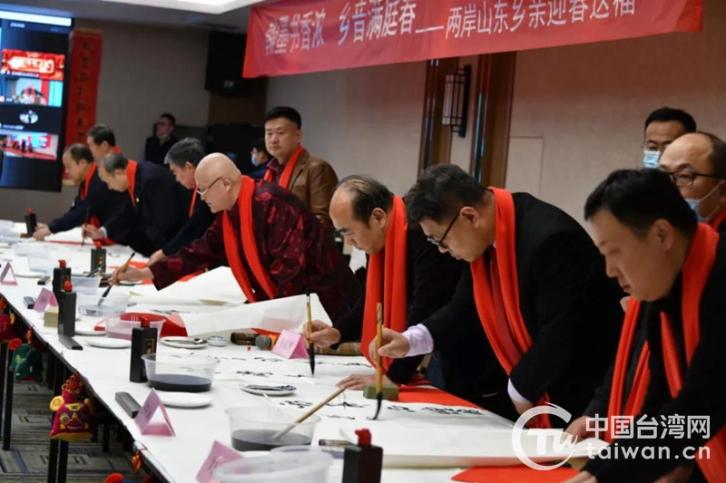 中國(guó)臺(tái)灣網(wǎng)1月14日訊 金牛俯首辭舊歲,瑞虎騰躍迎新春。1月12日,來(lái)自山東濟(jì)南與臺(tái)灣臺(tái)北市、基隆市的鄉(xiāng)親們?cè)凇霸贫恕睔g聚一堂,憶鄉(xiāng)愁、敘鄉(xiāng)情、話發(fā)展,共同舉辦“翰墨書香濃,鄉(xiāng)音滿庭春”兩岸山東鄉(xiāng)親迎春送;顒(dòng)。