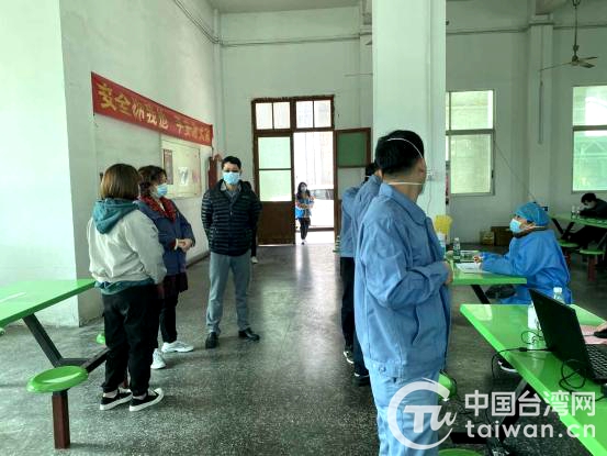 蓬江區(qū)臺(tái)港澳事務(wù)局相關(guān)人員到臨時(shí)接種點(diǎn)了解接種情況(圖片來源:蓬江區(qū)臺(tái)港澳事務(wù)局)