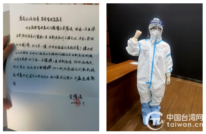 中國臺(tái)灣網(wǎng)1月14日訊 “在此我主動(dòng)請(qǐng)纓,加入到抗疫隊(duì)伍的最前線,為培養(yǎng)我的這片土地出份力……”此次奧密克戎疫情襲來,天津第三中心醫(yī)院臺(tái)灣籍醫(yī)生黃馨儀第一時(shí)間手寫《請(qǐng)戰(zhàn)書》遞交醫(yī)院,主動(dòng)申請(qǐng)進(jìn)“紅區(qū)”,參與患者醫(yī)療救治工作。那鮮紅的指印,正如她那顆抗擊疫情義無反顧的心。