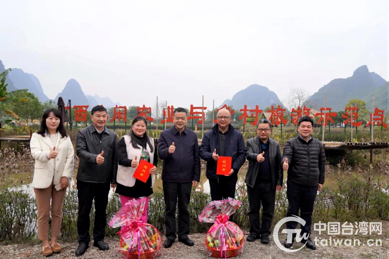 中國(guó)臺(tái)灣網(wǎng)1月25日訊 近日,桂林市委常委蔣育亮率全市涉臺(tái)工作部門(mén)走訪慰問(wèn)陽(yáng)朔縣臺(tái)資企業(yè)世外桃源和桂林市歸義生態(tài)農(nóng)業(yè)有限公司,與臺(tái)胞臺(tái)商進(jìn)行座談交流,并送上新春祝福和慰問(wèn)金。