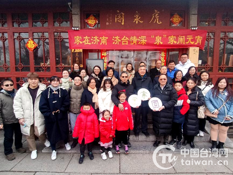 黑虎泉邊,臺(tái)胞們領(lǐng)略了其“水激柱石,聲如虎嘯”的風(fēng)采和泉城獨(dú)有的泉水文化特色;⑷w內(nèi),臺(tái)胞聆聽(tīng)非遺傳承人張繼平先生講解元宵節(jié)來(lái)歷,欣賞山東快板、戲法表演等傳統(tǒng)曲藝節(jié)目,參與了猜字謎小游戲,一起制作元宵,共同用元宵擺出了“家”、“團(tuán)圓”圖案,表達(dá)兩岸同胞期盼早日實(shí)現(xiàn)祖國(guó)完全統(tǒng)一的美好心愿。