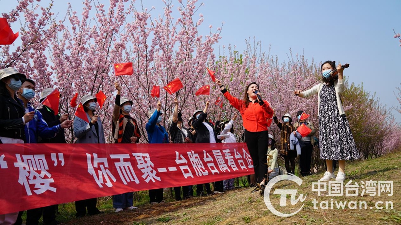 活動(dòng)現(xiàn)場(chǎng),漫山遍野的櫻樹層疊,美不勝收的櫻花綻放枝頭,金黃色的油菜花點(diǎn)綴其間,構(gòu)成一幅美麗的山水田園畫。臺(tái)胞臺(tái)屬走進(jìn)櫻花林中,在賞花拍照同時(shí),還表演了文藝節(jié)目,歡聲笑語(yǔ)充滿整個(gè)櫻花林。