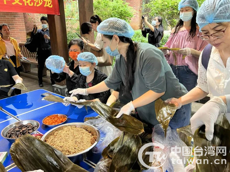 南寧臺(tái)胞陸配齊聚一堂包粽子迎端午