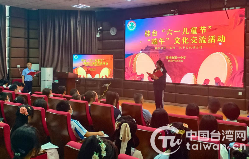 中國(guó)臺(tái)灣網(wǎng)5月31日訊 六一兒童節(jié)和端午節(jié)日近,廣西桂林市第一中學(xué)近日舉辦桂臺(tái)“六一兒童節(jié)”、“端午”文化交流活動(dòng),邀請(qǐng)?jiān)撔E_(tái)灣學(xué)生和部分外校臺(tái)灣學(xué)生及其家長(zhǎng),與當(dāng)?shù)貙W(xué)生代表歡聚一堂,共慶節(jié)日,其樂(lè)融融。