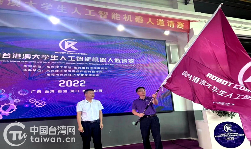 2022粵臺(tái)港澳大學(xué)生人工智能機(jī)器人邀請(qǐng)賽授旗儀式(圖片來源:東莞市委臺(tái)港澳辦)