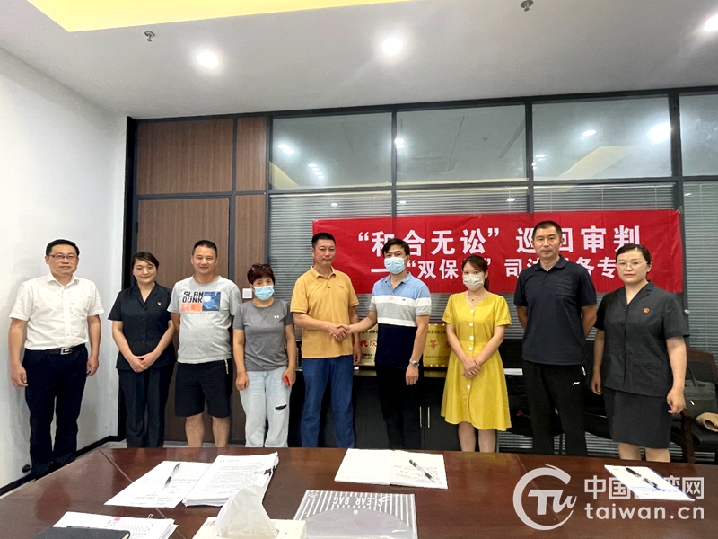 中國臺灣網(wǎng)7月20日訊 近日,淮安市涉臺糾紛調(diào)處中心“和合無訟”巡回法庭走進(jìn)淮安經(jīng)開區(qū)勞動爭議仲裁院,淮安市臺辦特邀調(diào)解員、淮安經(jīng)開區(qū)法院法官和淮安經(jīng)開區(qū)勞動爭議仲裁院仲裁員共同就某臺企勞動爭議批量案件開展聯(lián)合調(diào)解活動。
