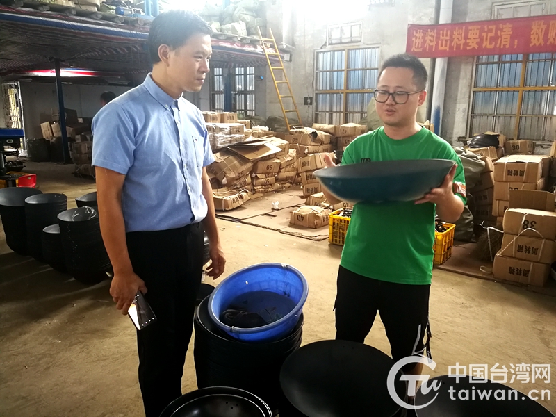 劉孝原在廣西南寧創(chuàng)業(yè)發(fā)展,他說,近日收到臺灣彰化好友的信息,稱臺灣物料成本上漲,希望了解大陸產業(yè)行情,委托他到“中國鐵鍋之都”玉林市陸川縣鐵鍋工廠了解那里的原料、技藝、生產、規(guī)模和市場等情況。陸川縣臺辦得知后,迅速聯(lián)系上他,并安排他到陸川進行考察。