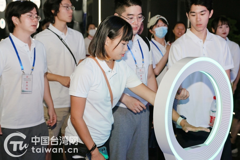 在未來(lái)科技城城市展館體驗(yàn)新科技新產(chǎn)品(圖片來(lái)源:浙江省臺(tái)辦)