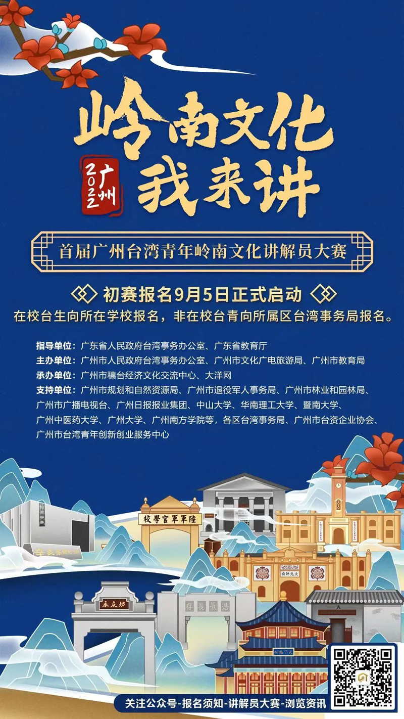 首屆廣州臺灣青年嶺南文化講解員大賽將于9月5日啟動