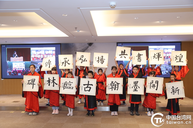 開幕式上,主辦方為獲得書法作品一、二、三等獎的臺灣獲獎代表頒發(fā)了獲獎證書。來自中國宋慶齡青少年科技文化交流中心書法班的小朋友還在北京會場向兩岸嘉賓展示他們書寫的16字書法作品——“碑林臨古,翰墨開新,傳承弘揚,共書輝煌”,贏得兩岸嘉賓的熱烈掌聲和一致贊嘆。