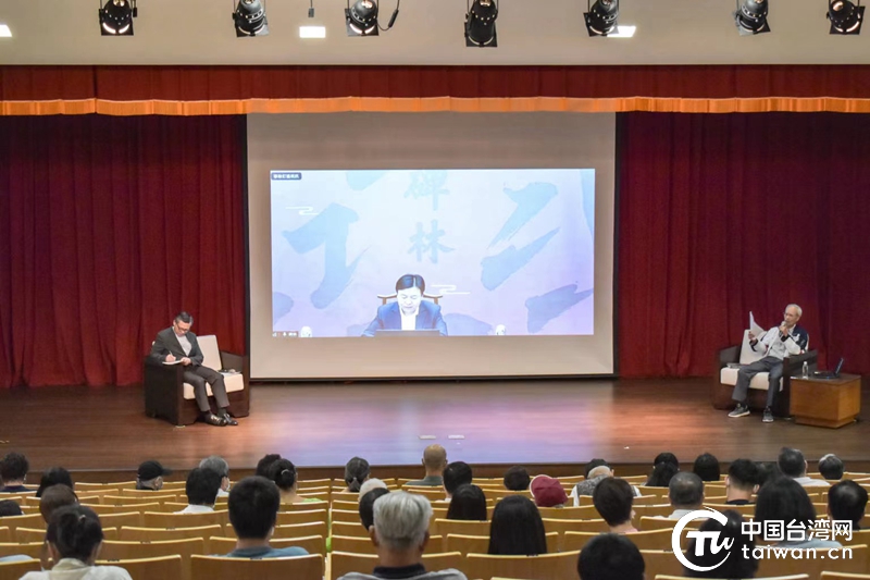 開幕式后,西安碑林博物館副館長劉東平和長期在臺推廣書法教育的臺灣藝術(shù)大學教授李郁周,通過兩岸視頻連線的方式,舉辦以“書法的時代美感與意義——從西安碑林著名碑藏談起”為主題的書藝交流講座。