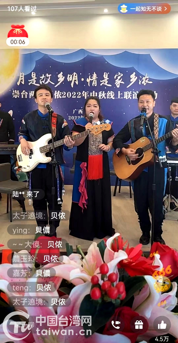 中國臺灣網(wǎng)9月13日訊 “太喜歡這樣的活動了,不僅聽到了熟悉的鄉(xiāng)音,看到了家鄉(xiāng)的美好變化,還感受到了來自家鄉(xiāng)親人的關(guān)懷與溫暖,希望這樣的活動多多舉辦。”近日,廣西崇左市舉辦以“月是故鄉(xiāng)明·情是家鄉(xiāng)濃”為主題的“崇臺兩岸貝儂”2022年中秋線上聯(lián)誼活動,與100多名遠(yuǎn)嫁臺灣的陸配在線上共慶佳節(jié),參加活動的陸配紛紛留言作上述表示。