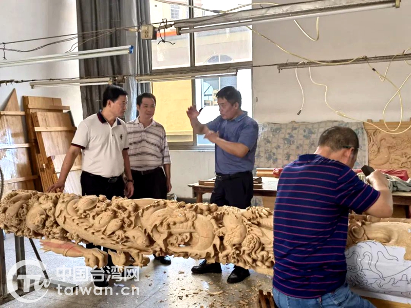 工作專班在玉林云天文化民俗世界雕刻車間調(diào)研(圖片來源:玉林市臺辦)